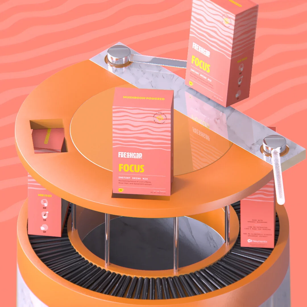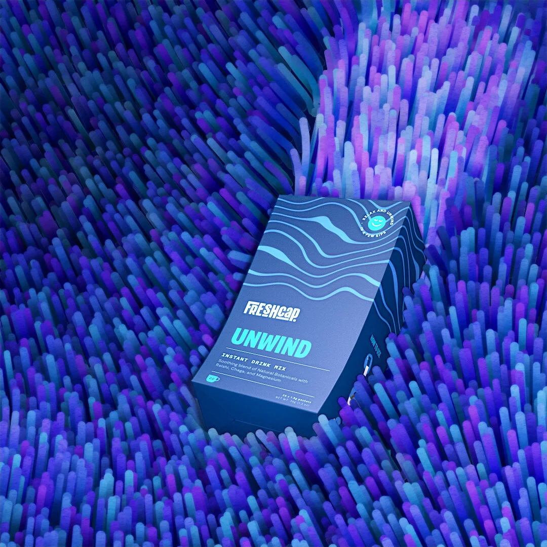 These social videos let people FEEL the benefits of Freshcap drink sticks before they even try them — this series of “oddly satisfying” renders that abstractly capture the unique benefits of each different mushroom elixir.